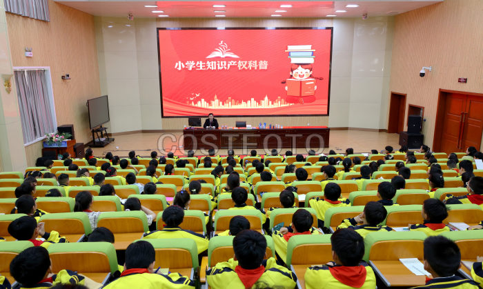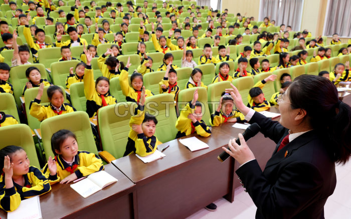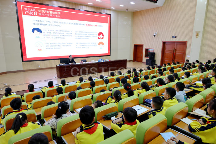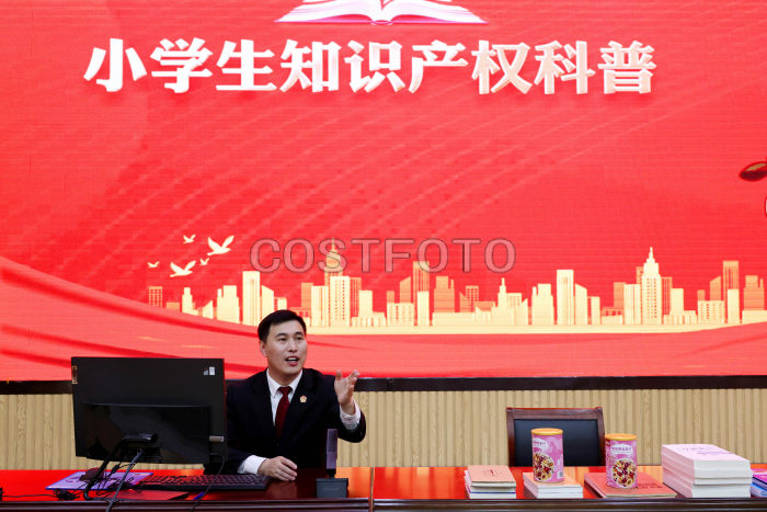 2024年4月25日,山东省枣庄市市中区人民法院知识产权庭法官在东湖小学为师生们讲解知识产权保护的法律法规。(吉喆、彭冠华、郝立静、李娟、王蒙/Costfoto,版权作品,严禁转载)