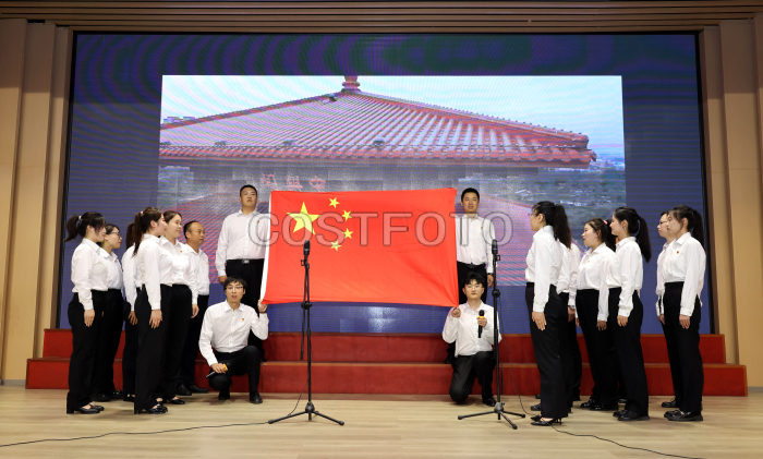 2024年7月12日,山东省枣庄市市中区人民法院干警在表演诗朗诵。(吉喆 陈灿/Costfoto,版权作品,严禁转载)