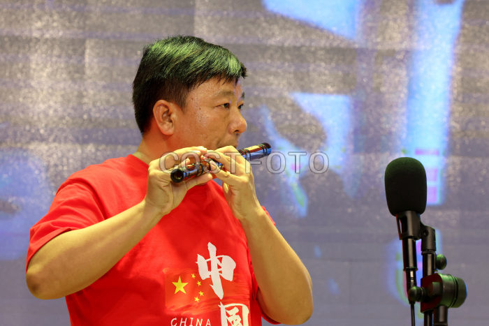 2024年7月12日,山东省枣庄市市中区人民法院法官在进行笛子独奏《为了谁》。(吉喆 陈灿/Costfoto,版权作品,严禁转载)