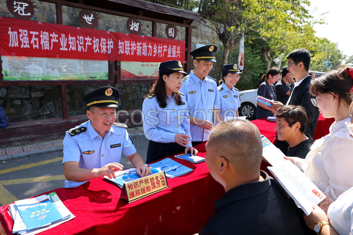 金秋时节,山东省枣庄市中级人民法院联合市场监管、农业农村等执法人员走进峄城“冠世榴园”风景区开展“石榴产业知识产权保护”专题宣传活动,通过向游人、果农、商户等讲解知识产权相关的法律知识,进一步提升社会公众尊重和保护知识产权的意识。