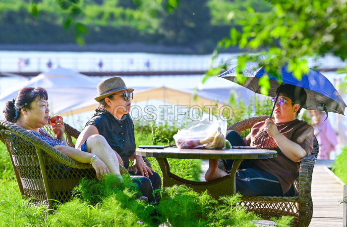 2025年7月6日,游客在乌兰浩特市神骏湾生态体验区休闲。(王正/Costfoto,版权作品,严禁转载)